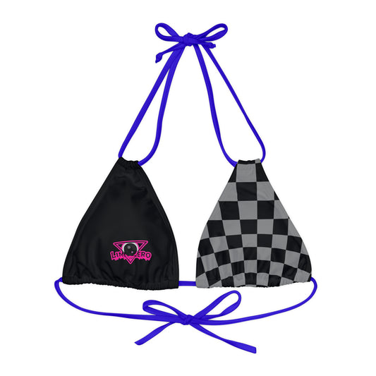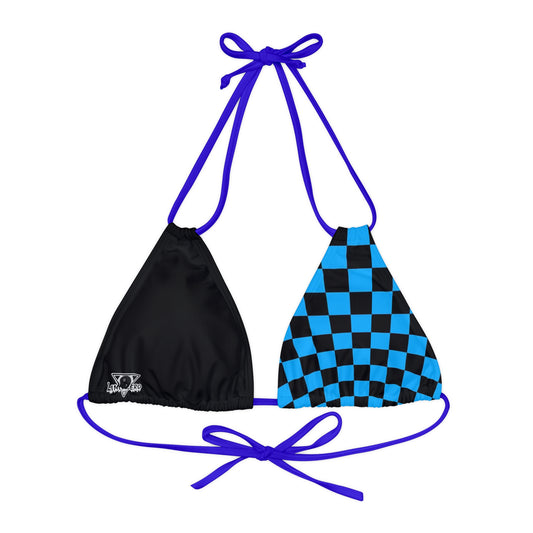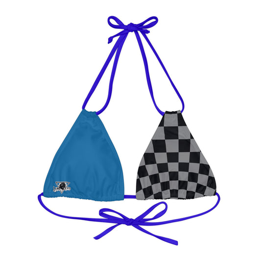 LimitZero Blue Half-Checkered string bikini top