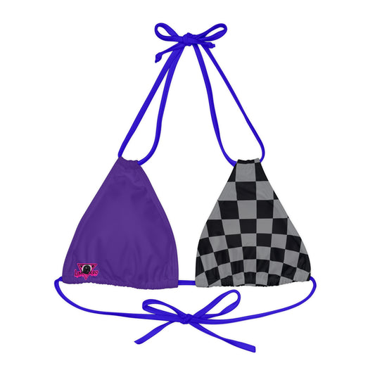 LimitZero Purple Half-Checkered string bikini top