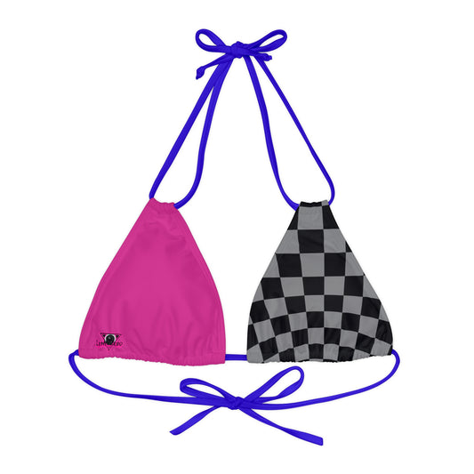 LimitZero Grey Half Checkered Pink V2 Strappy Triangle Bikini Top